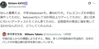 【ダブスタ】「ロックは反権力じゃないとダサい!」→「高市のせいで中国公演中止、どうしてくれるんだ!」→鍵垢にして逃亡wwwww
