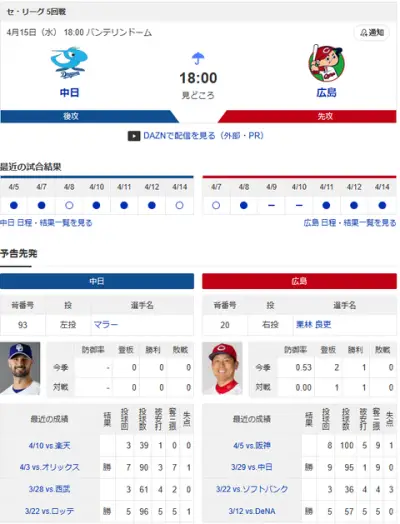 広島カープ、今季初の完封負け ← 既に3回ぐらいしてると思った