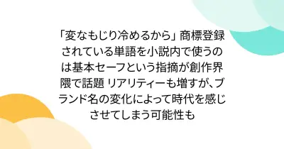 「変なもじり冷めるから」 商標登録されている単語を小説内で使うのは基本セーフという指摘が創作界隈で話題 リアリティーも増すが、ブランド名の変化によって時代を感じさせてしまう可能性も