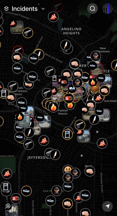 【画像】ロサンゼルス警察「いま犯罪が起きてる場所をマップ化しました、ここには近寄らないで!」