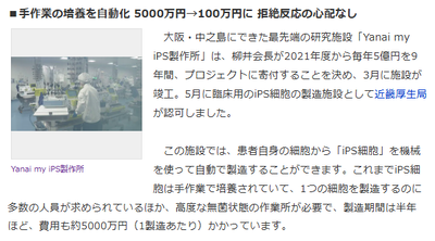 【速報】iPS細胞研究施設にユニクロ柳井会長が45億円寄付「細胞培養を自動化、費用50分の1に」