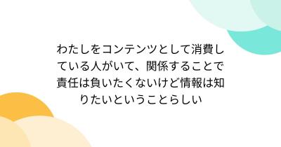 わたしをコンテンツとして消費している人がいて、関係することで責任は負いたくないけど情報は知りたいということらしい