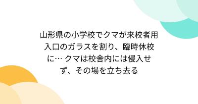 山形県の小学校でクマが来校者用入口のガラスを割り、臨時休校に… クマは校舎内には侵入せず、その場を立ち去る