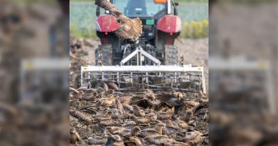 畑の土を耕すと起こった現象『トビトビトビトビ…』農家の土起こしを心待ちにしていた鳥たちが大密集「スズメみたいになってる!?」