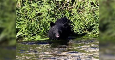 捕まった子グマちゃん(50cm)、山へ帰される