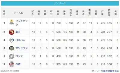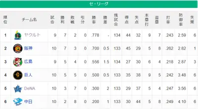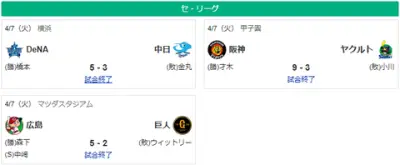4/7セ順位 燕-虎=-鯉-兎==星=竜