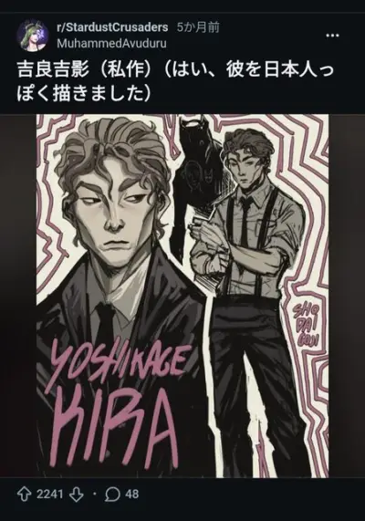 【画像】外国人「ジョジョの吉良吉影を日本人っぽく描いてみたぞ!」