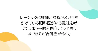 レーシックに興味があるがメガネをかけている眼科医がいる意味を考えてしまう→眼科医「しようと思えばできるが合併症が怖い」