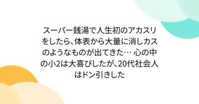 スーパー銭湯で人生初のアカスリをしたら、体表から大量に消しカスのようなものが出てきた… 心の中の小2は大喜びしたが、20代社会人はドン引きした