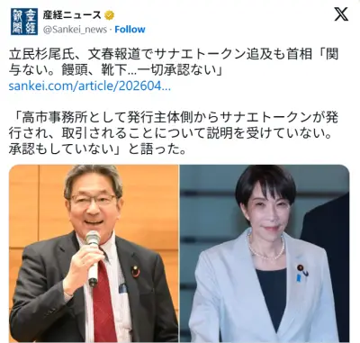【人気記事一覧】立民杉尾氏、サナエトークン武器に首相に直接攻勢を仕掛けるも→肝心のソースが週刊誌で返り討ち「関与ない。饅頭、靴下、一切承認ない」