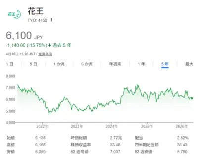 ワイ「高配当株より増配株が良いんだなーよーし花王を買おう」