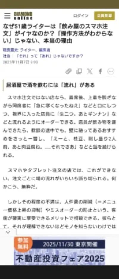 52歳ライター「居酒屋のスマホ注文大嫌い!なんかこうさぁ!”流れ”がないよねえ!!!」