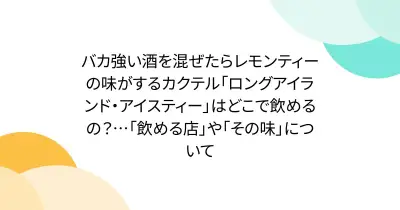 バカ強い酒を混ぜたらレモンティーの味がするカクテル「ロングアイランド・アイスティー」はどこで飲めるの?…「飲める店」や「その味」について