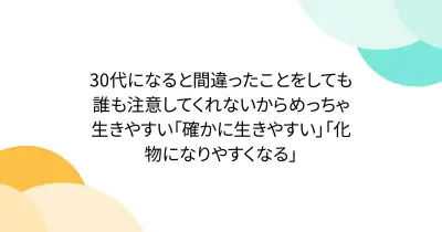 30代になると間違ったことをしても誰も注意してくれないからめっちゃ生きやすい「確かに生きやすい」「化物になりやすくなる」