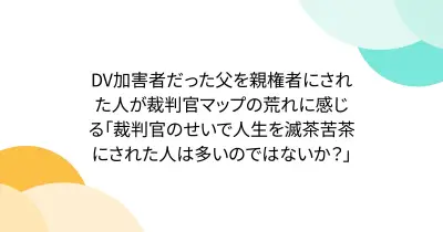 DV加害者だった父を親権者にされた人が裁判官マップの荒れに感じる「裁判官のせいで人生を滅茶苦茶にされた人は多いのではないか?」