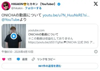 ヒカキン、麦茶「ONICHA」に関する“悪質なデマ”に法的対応へ「すでに全ての証拠を押さえ、開示の手続きを始めています」