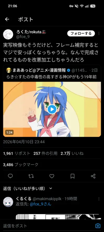 【動画】フレーム補間されたアニメのOP、ヌルヌル過ぎて逆に安っぽくなり炎上