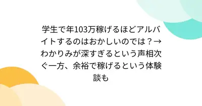 学生で年103万稼げるほどアルバイトするのはおかしいのでは?→わかりみが深すぎるという声相次ぐ一方、余裕で稼げるという体験談も