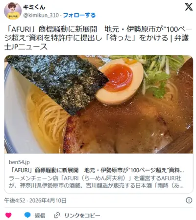 ラーメン屋AFURI、また商標を取りまくろうとして伊勢原市に怒られる