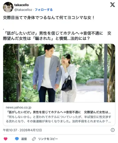 女性は、ラブホテルに一緒に入っても、「セックスするつもりはない」らしいな。
