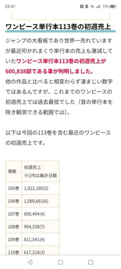 【悲報】ワンピース単行本113巻の初週売上が更に激減し過去最低の数字に。なんで買わないの?