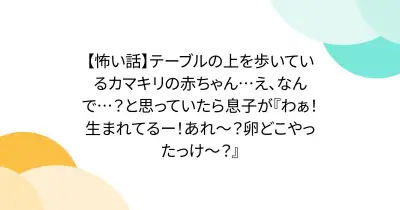 【怖い話】テーブルの上を歩いているカマキリの赤ちゃん…え、なんで…?と思っていたら息子が『わぁ!生まれてるー!あれ~?卵どこやったっけ~?』