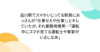 品川駅でスマホいじってる駅員におっさんが『仕事せえや仕事!』とキレていたが、それ業務用携帯…「運転中にスマホ見てる運転士や車掌がいるしなあ」