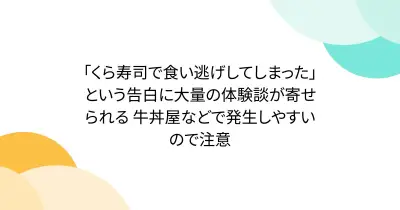 「くら寿司で食い逃げしてしまった」という告白に大量の体験談が寄せられる 牛丼屋などで発生しやすいので注意