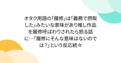 オタク用語の「履修」は「義務で摂取した」みたいな意味があり推し作品を履修呼ばわりされたら怒る話に…「履修にそんな意味はないのでは?」という反応続々