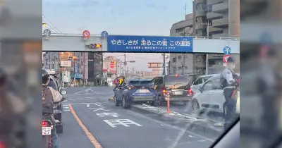 「合流で亀になってるタイムズカーがいるんだけど、どう走ったらそうなるんだ」ちょっと不思議な事故車と遭遇…標語がなんだか皮肉