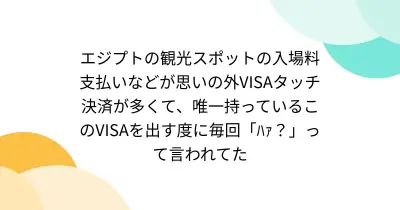 エジプトの観光スポットの入場料支払いなどが思いの外VISAタッチ決済が多くて、唯一持っているこのVISAを出す度に毎回「ハァ?」って言われてた