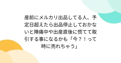 産前にメルカリ出品してる人、予定日超えたら出品停止しておかないと陣痛中や出産直後に慌てて取引する事になるかも「今?!って時に売れちゃう」