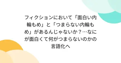 フィクションにおいて「面白い内輪もめ」と「つまらない内輪もめ」があるんじゃないか?…なにが面白くて何がつまらないのかの言語化へ