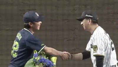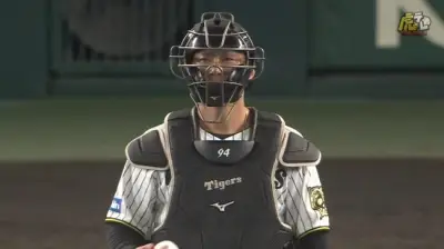 引退を表明してる原口文仁、9回表にキャッチャーとして守備位置に!!!ただし岩貞四球