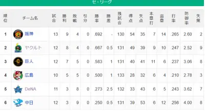 ヤクルト、初の連敗で首位陥落