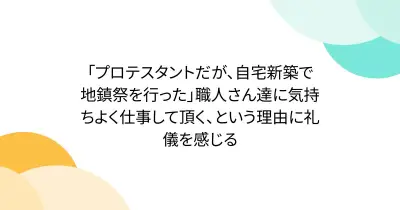 「プロテスタントだが、自宅新築で地鎮祭を行った」職人さん達に気持ちよく仕事して頂く、という理由に礼儀を感じる