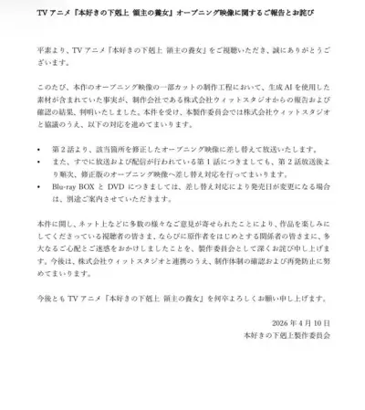 【悲報】『本好きの下剋上』、OP映像にAIを使って謝罪。背景くらい使ってもいいだろ……