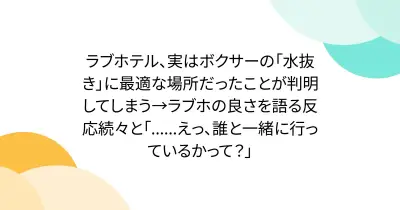 ラブホテル、実はボクサーの「水抜き」に最適な場所だったことが判明してしまう→ラブホの良さを語る反応続々と「......えっ、誰と一緒に行っているかって?」