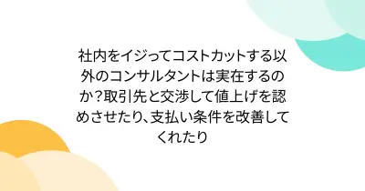 社内をイジってコストカットする以外のコンサルタントは実在するのか?取引先と交渉して値上げを認めさせたり、支払い条件を改善してくれたり