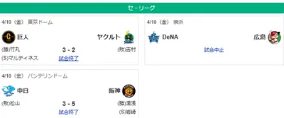 4/10セ順位 虎-燕=兎鯉==-de-竜