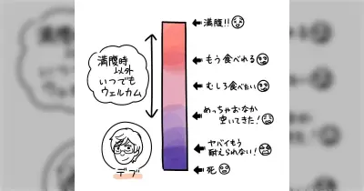 「もしかして、フツーの人っておなか空いてる時以外おなか空いてないの」デブとガリの"腹減り度とモノを食べたい気持ちの違い"を表現したゲージに納得
