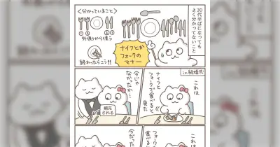 30代になってもわからない日常マンガ「ナイフとかフォークとかのマナー」があるある、なにもわかってない姿が可愛いし面白い