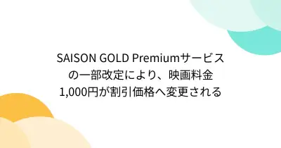 SAISON GOLD Premiumサービスの一部改定により、映画料金1,000円が割引価格へ変更される