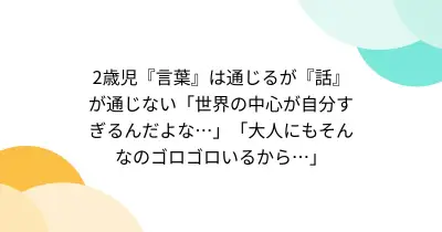 2歳児『言葉』は通じるが『話』が通じない「世界の中心が自分すぎるんだよな…」「大人にもそんなのゴロゴロいるから…」