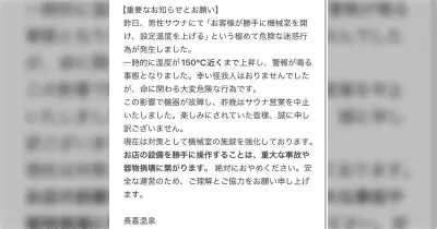 名古屋の銭湯で「客が勝手にサウナの温度を150度まで上げる」事案が発生してしまう「殺人未遂では」「実質放火だろこれ」