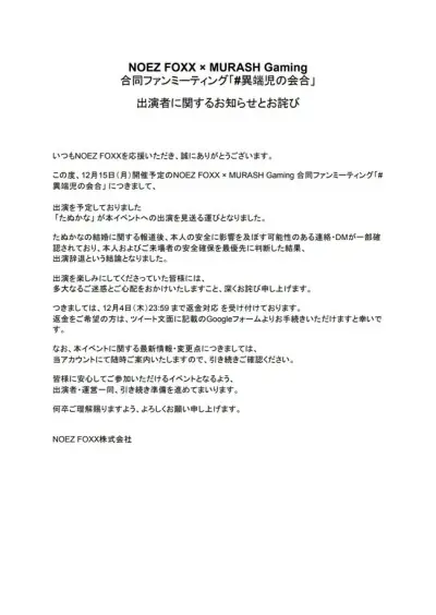【悲報】たぬかなさん身の危険を感じイベント辞退wwwwwwwww