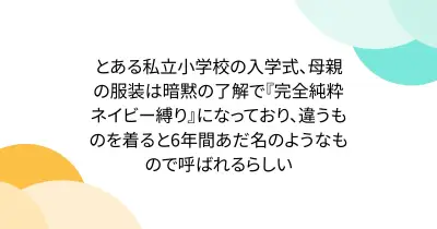 とある私立小学校の入学式、母親の服装は暗黙の了解で『完全純粋ネイビー縛り』になっており、違うものを着ると6年間あだ名のようなもので呼ばれるらしい