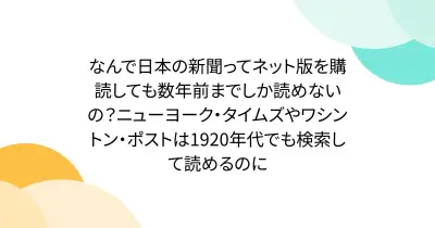 なんで日本の新聞ってネット版を購読しても数年前までしか読めないの?ニューヨーク・タイムズやワシントン・ポストは1920年代でも検索して読めるのに
