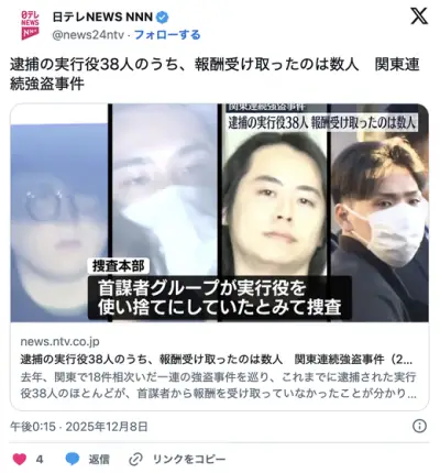トクリュウ実行犯、ほとんどが報酬を貰えない