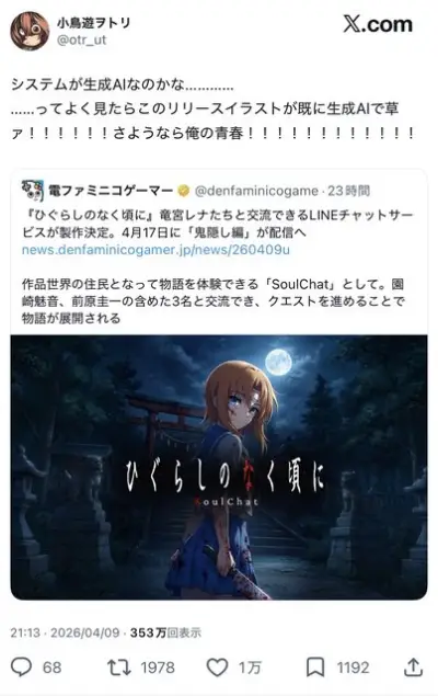 【悲報】ひぐらしのなく頃にとかいうジジイ向けコンテンツ、生成AIを使用して炎上
